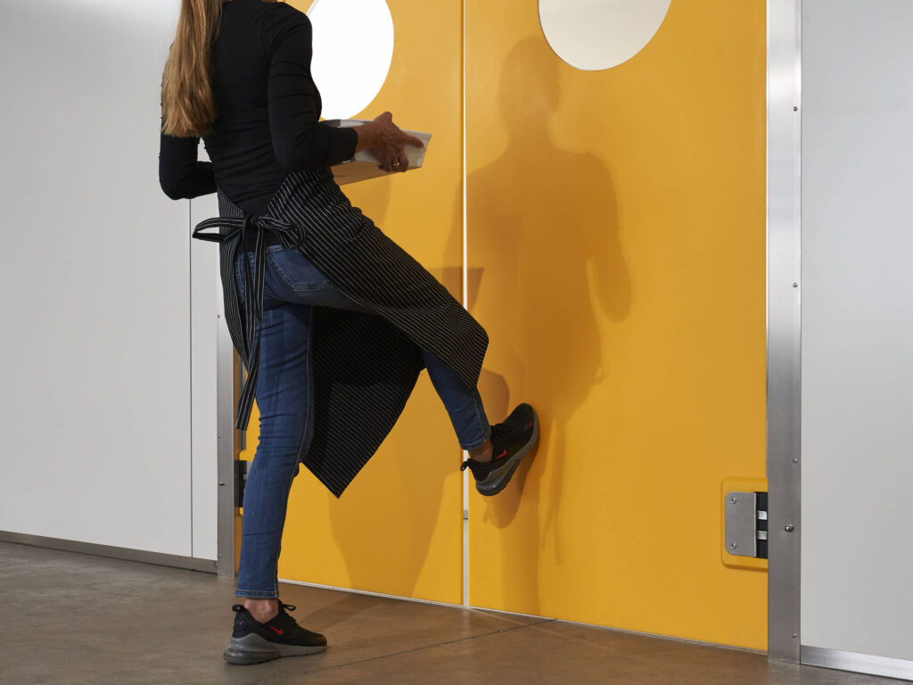 Polietilen (PE), paslanmaz çelik, ahşap veya HPL kompakt panellerden üretilen çarpma kapılar, hızlı ve kolay geçişin