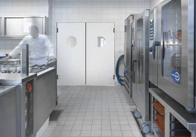 Çarpma kapılar, restoran ve yemekhaneler gibi “dolu ellerle” çalışılan ortamlar için son derece elverişlidir ve kolayca açılır. Karmaşık mimari gereksinimler için çarpma kapılarımızın paslanmaz çelik modelleri de mevcuttur. Parlak yüzey ve yüksek kaliteli kompozit malzeme, uzun ömürlü ve estetik bir görünüm sağlar.